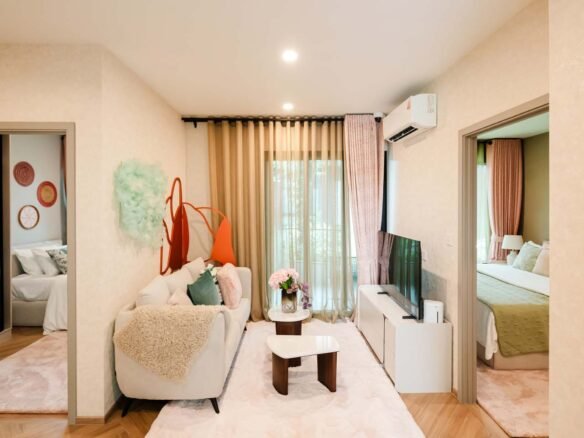 Coralina Kamala offers a versatile range of layouts to suit diverse needs. One-bedroom apartments (26-44 sq.m.) are perfect for couples or investors, while 1-bedroom plus units (46-49 sq.m.) provide extra space. Two-bedroom options (64-68 sq.m.) accommodate families, with larger 2-bedroom plus units (98-107 sq.m.) and penthouses (71-128 sq.m.) featuring private roof gardens for ultimate luxury. Each unit boasts open-plan designs, spacious balconies, and ocean-inspired interiors with high-quality finishes, ensuring bright, airy living spaces that evoke a perpetual vacation vibe.